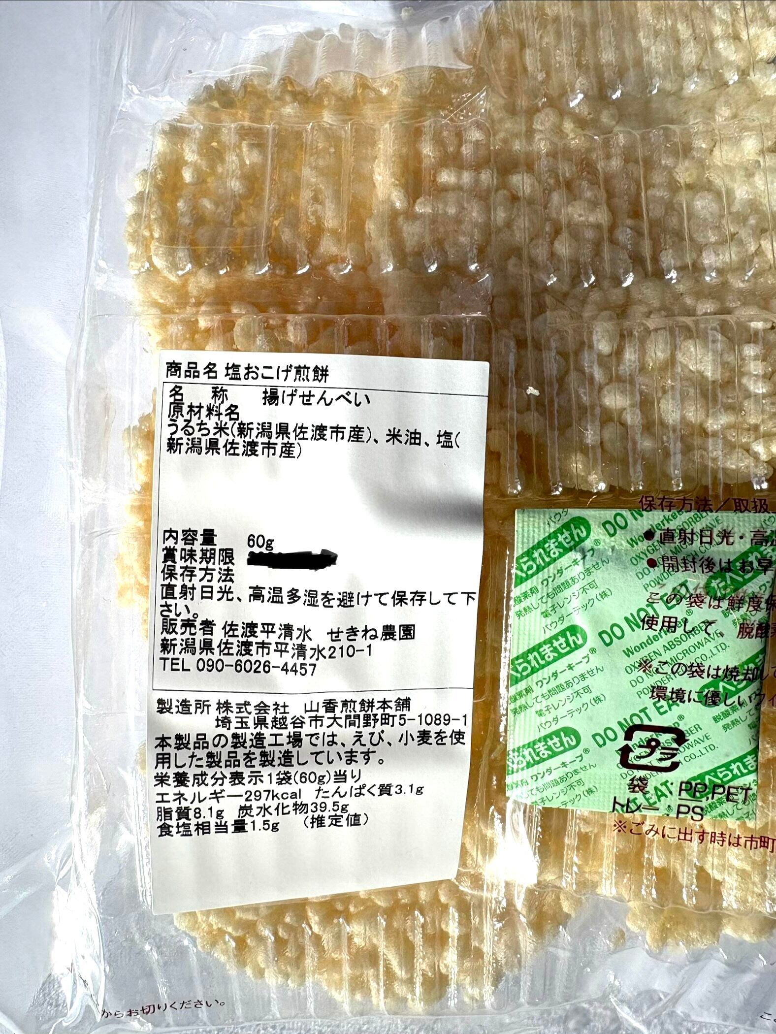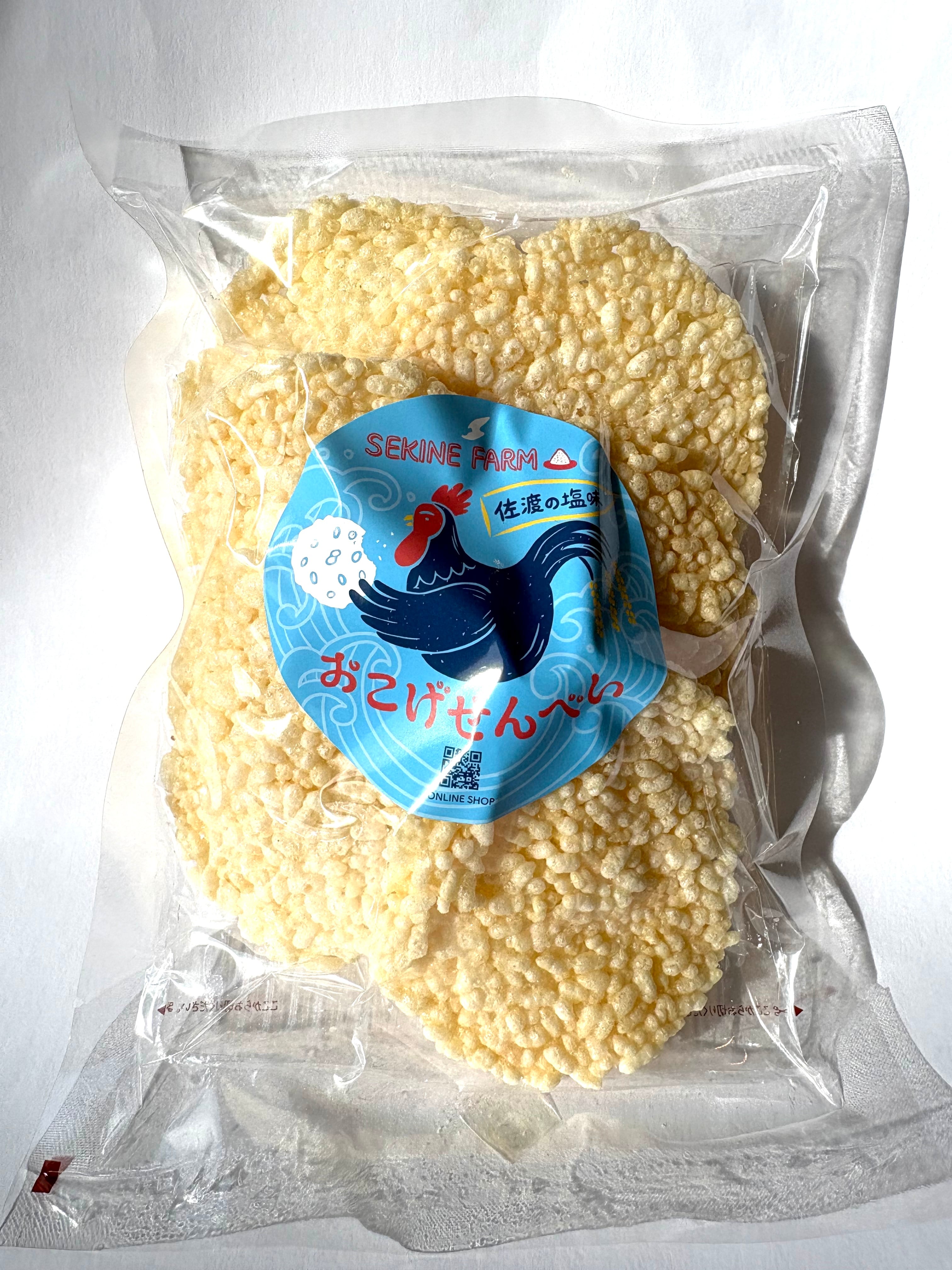 せきね農園の無農薬無化学肥料または特別栽培コシヒカリを使ったおこげせんべいです。