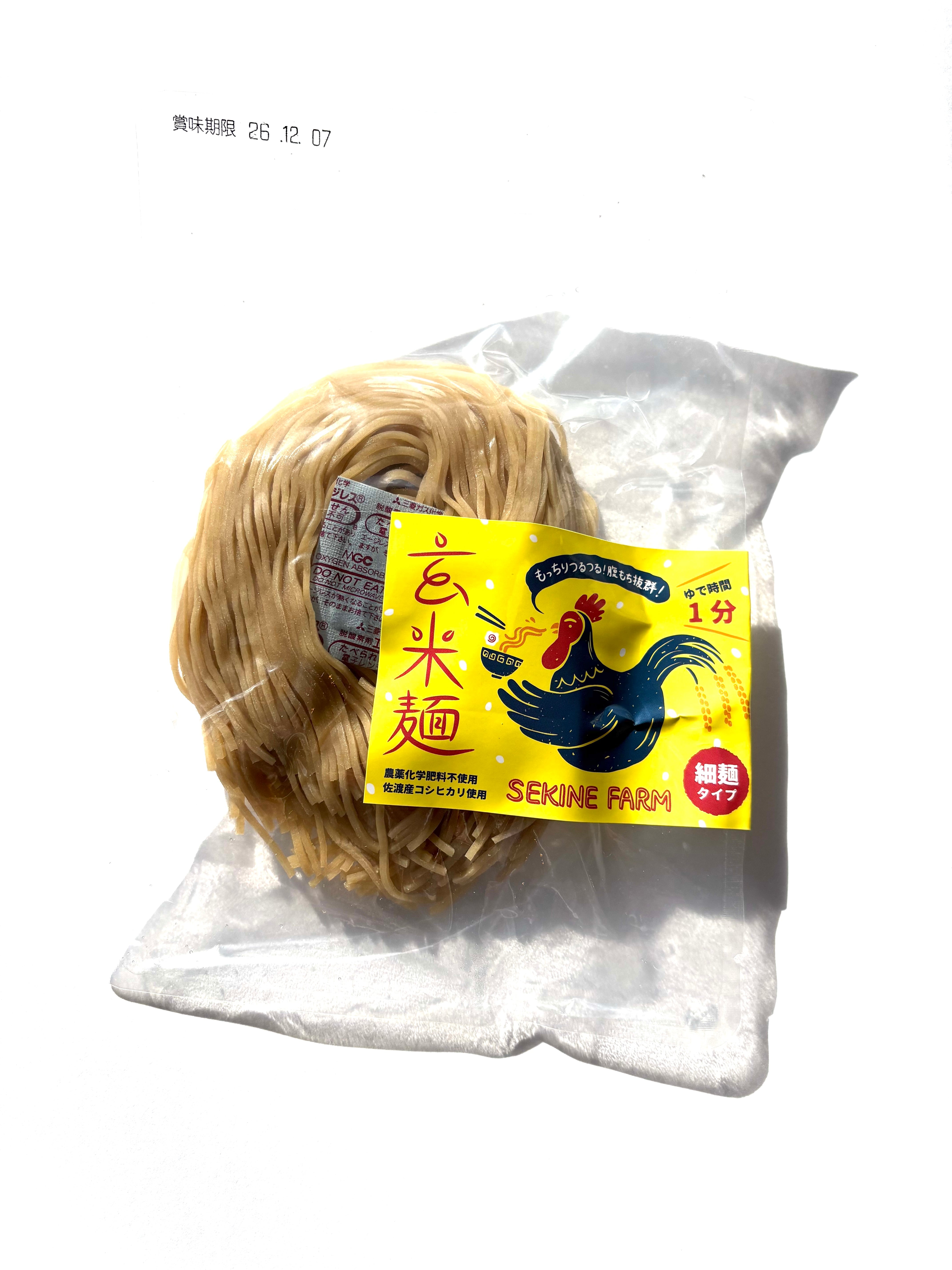 農薬・化学肥料不使用のコシヒカリを玄米のまま焙煎して麺にしました。